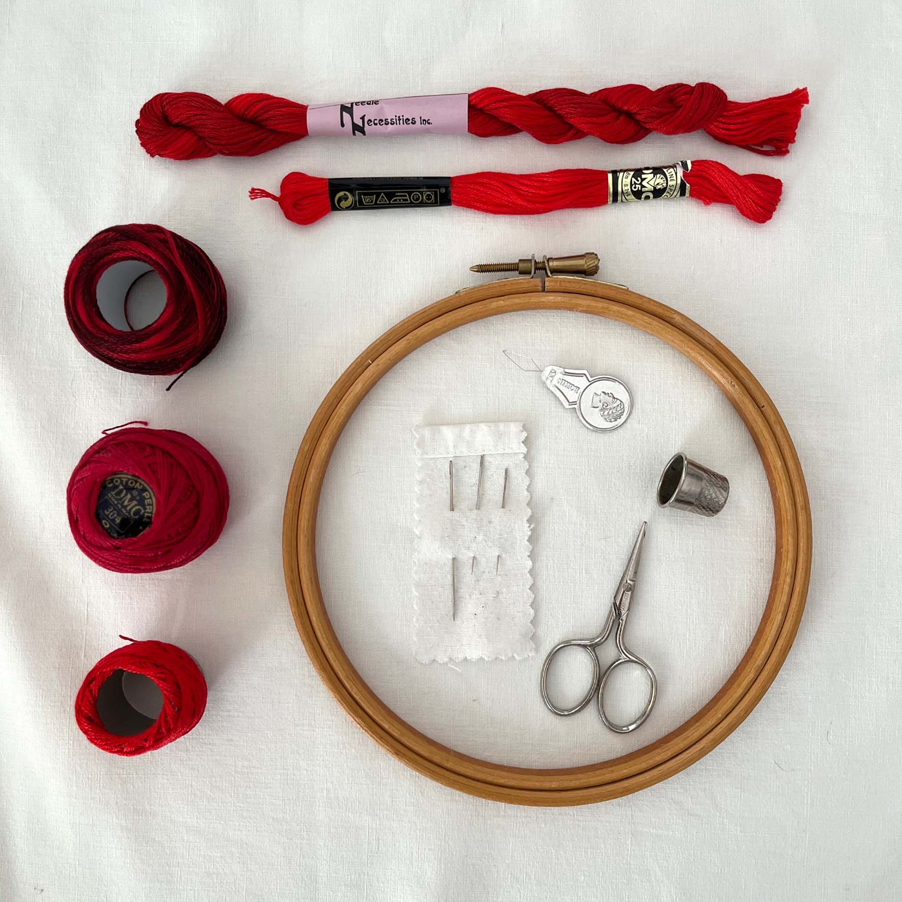 Chaque participant repartira avec sa réalisation et un kit de broderie : cercle à broder, aiguilles, fils, enfileur et tuto.