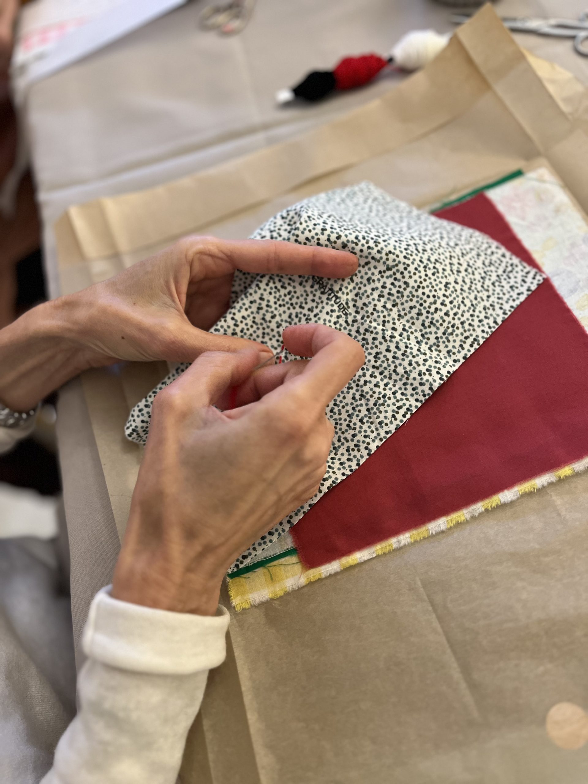 Vous apprendrez les points essentiels de broderie, vous dessinerez au fil vos sentiments lors d’un jeu, vous broderez une suspension en tissu imprimé d’un motif que vous choisirez et fabriquerez une pochette de rangement en origami.